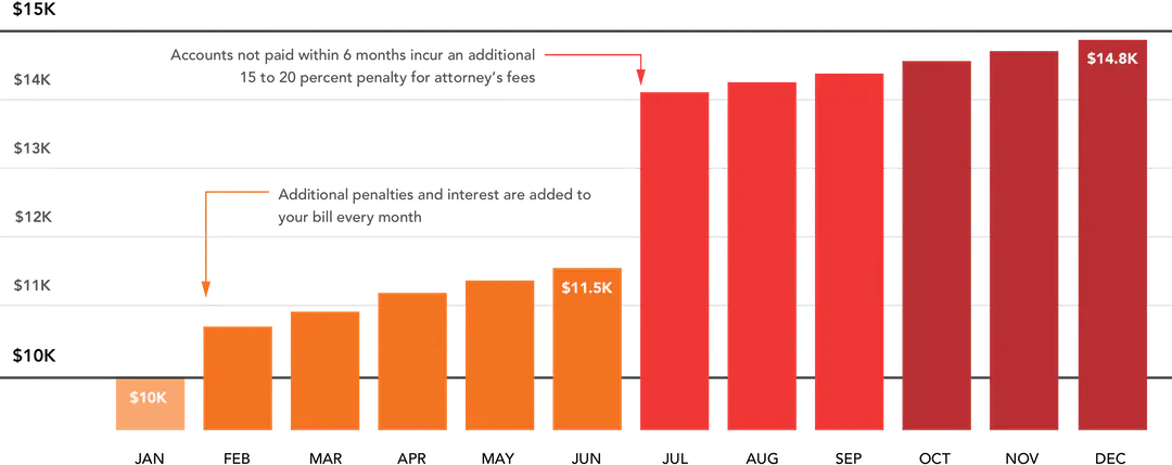 Note: Penalties and interest are based on counties in Columbia. Attorney’s fees are an estimate and may be higher or lower depending on your taxing authority